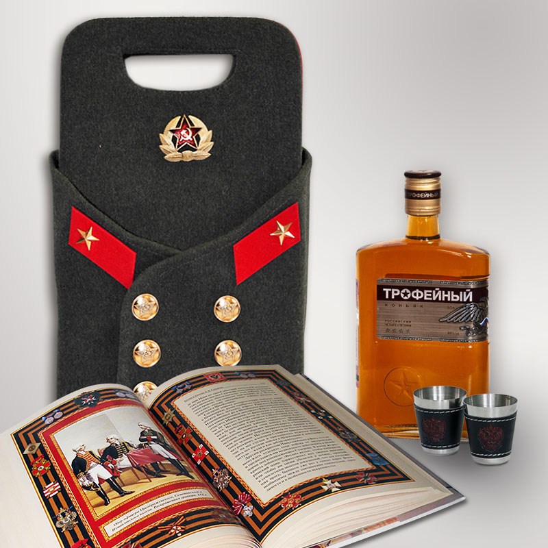 Подарочный набор "Советский" - это оригинальный подарок для людей, которые чтут традиции России, ее победы и достижения. Внешний вид упаковки (кофр) стилизован под военную форму советской армии. Такой подход позволил придать подарку неповторимость и очень оригинальный вид. Кофр универсален, он может вмещать в себя любые подходящие по размеру подарки. Продукция уникальна, аналогов нет, это собственная разработка нашей компании.