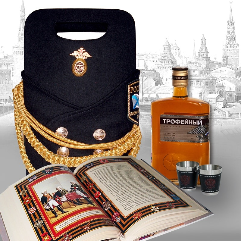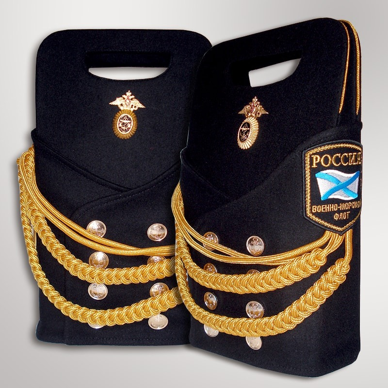 Подарочный набор "ВМФ" — это оригинальный подарок для людей, которые чтут традиции России, ее победы и достижения. Внешний вид упаковки (кофр) стилизован под современную военную униформу российского флота (офицерский мундир). Такой подход позволил придать подарку неповторимость и очень оригинальный вид. Кофр универсален, он может вмещать в себя любые подходящие по размеру подарки. Продукция уникальна, аналогов нет, это собственная разработка нашей компании. Набор включает в себя подарочный кофр из тонкого войлока, в нем подарочное издание книги "Россия. Наука побеждать" или "1812 год. Россия & Франция", стальную фляжку, две стальные стопки.