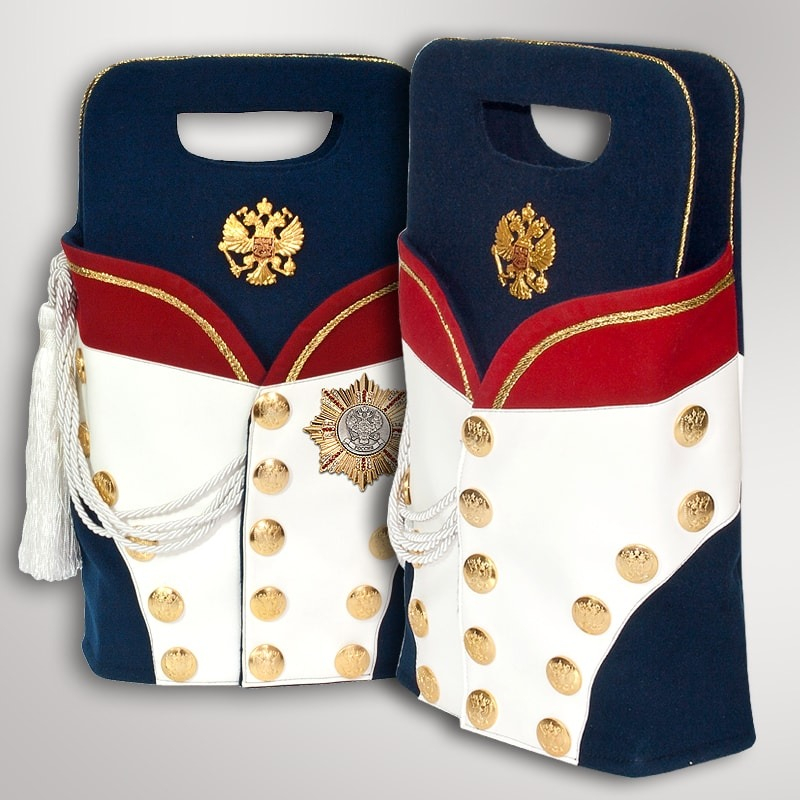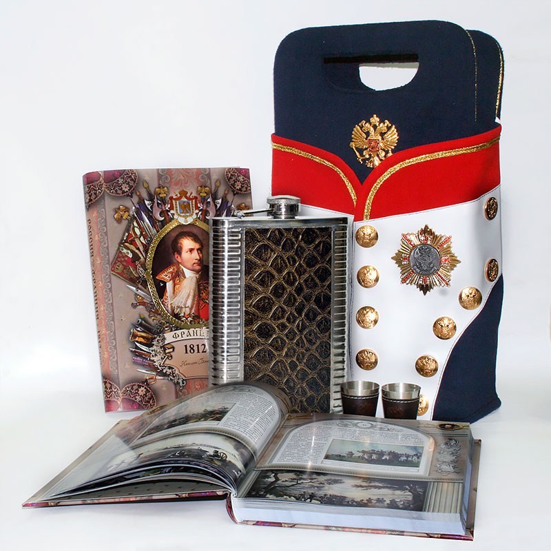 Подарочный набор "Фельдмаршал" - это оригинальный подарок для людей, которые чтут традиции России, её победы и достижения. Внешний вид упаковки (кофр) стилизован под военную униформу российской армии 1812 года (офицерский мундир). Такой подход позволил придать подарку неповторимость и очень оригинальный вид. Кофр универсален, он может вмещать в себя любые подходящие по размеру подарки. Продукция уникальна, аналогов нет, это собственная разработка нашей компании.