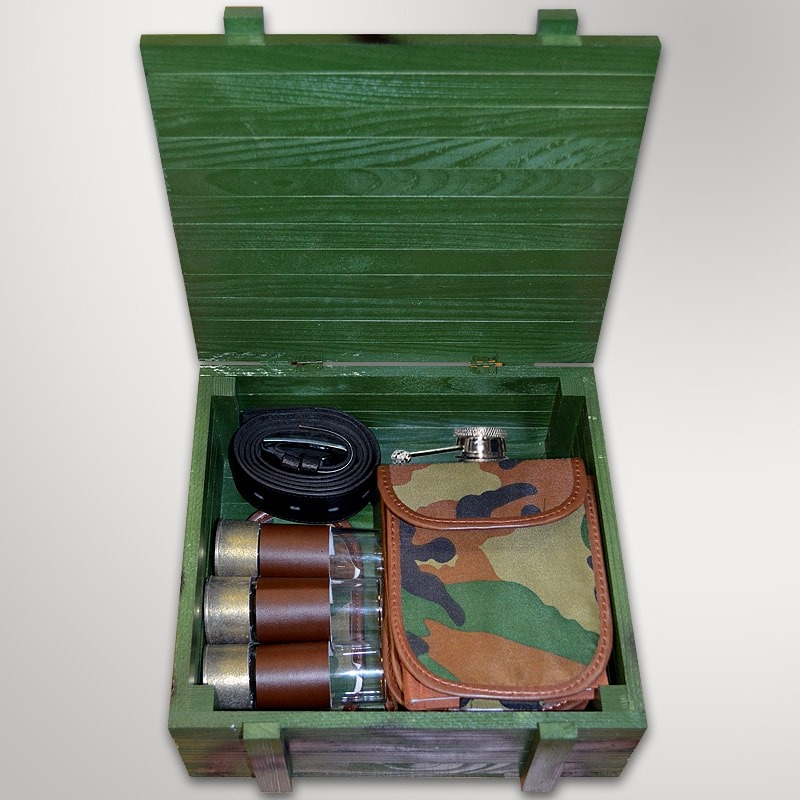 Подарочный набор "Патронташ охотничий" в деревянном коробе (с фляжкой)